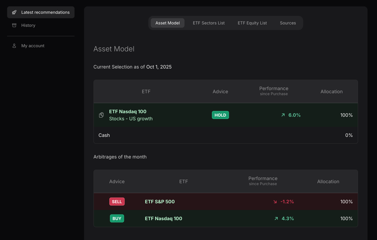 Our models continuously adjust to evolving market conditions to help protect and grow your capital. Stay aligned with our updated recommendations to keep your allocations on track.